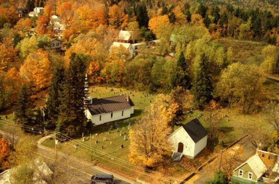 À gauche, l'église anglicane, à droite la chapelle Hillside en 1990