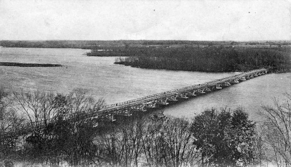 Le pont de Bellefeuille, vu du haut du clocher de l'église, vers 1905.