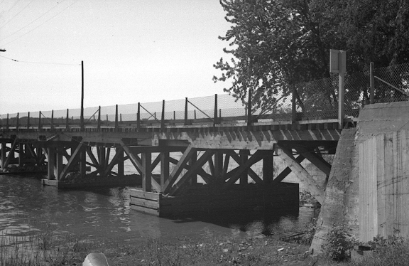 À gauche, la butée Nord du pont de Bellefeuille après sa démolition, vers 1950-55