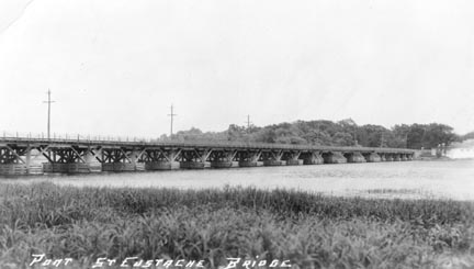 L'entrée du pont de Bellefeuille, du côté de Saint-Eustache, vers 1930