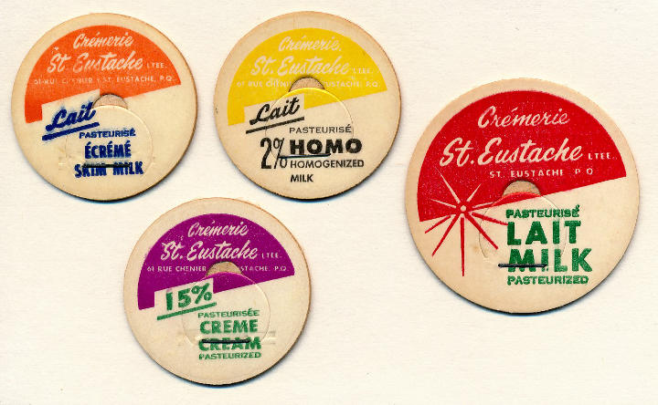 Des capsules de bouteilles de lait et de crème de la Crèmerie