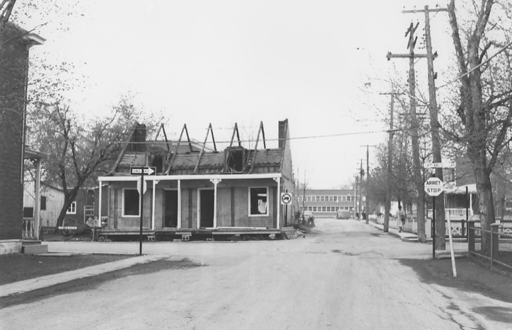 L'avant de la maison pendant sa démolition, vers 1962, rue Saint-Nicolas vers l'Ouest