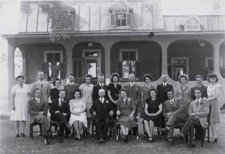 Achille Desormeaux et Albertine Bélanger et leur famille devant la maison,