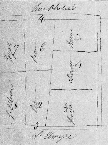 Plan du secteur en 1819. Le lot porte alors le numéro 6.