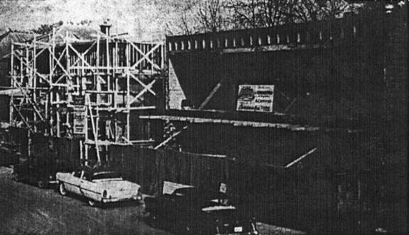 À l'extrême gauche, la maison Chaurette en 1956, pendant les travaux de transformation