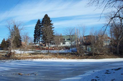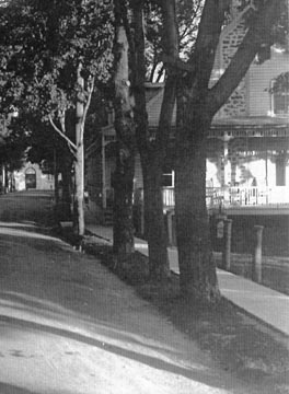 ![]() La maison Hubert Globensky en 1925, par le photographe O. Allard. Notez la localisation de la maison, en bordure du trottoir. |