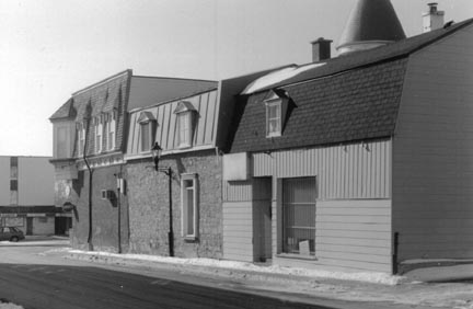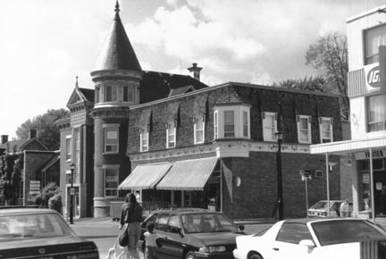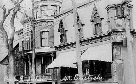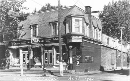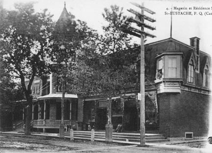 Le magasin (à droite) et la maison d'Ernest Lahaie (à gauche) vers 1915
