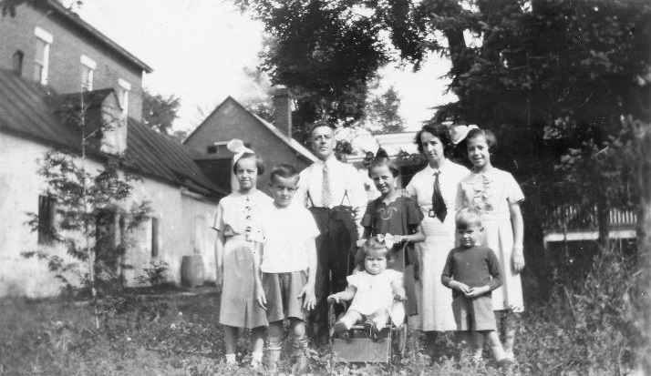 Eugène Trudeau et Marthe Raby avec leur famille à l'arrière de la maison, vers 1935