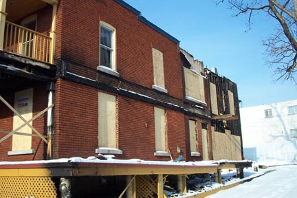 L'immeuble en 2003 et les dommages causés par l'incendie (photo MGV)
