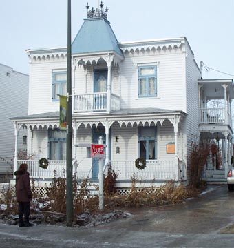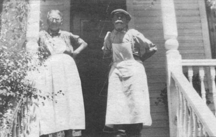 Le boulanger David Goyer dit Bélisle et son épouse Cordélia Lapointe, devant la maison, avant 1923.