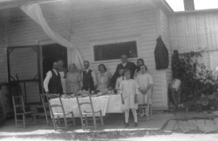 Le boulanger David Goyer dit Bélisle et sa famille, devant la boulangerie, avant 1923.