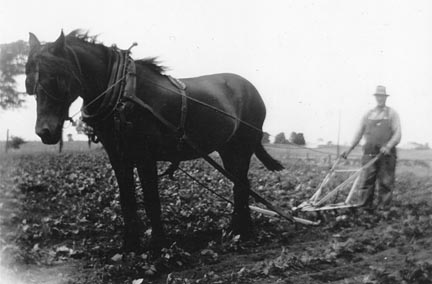 Le travail de la terre vers 1940, le long de la montée du Domaine, avant le percement
