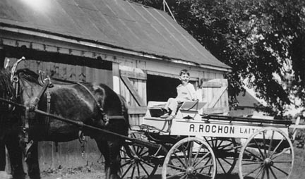 Les bâtiments à l'arrière de la maison et Alphonse «Bidou» Rochon,
