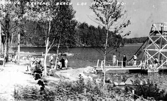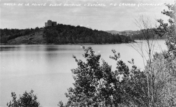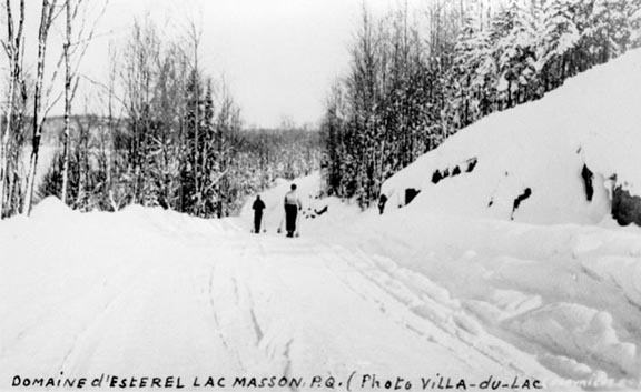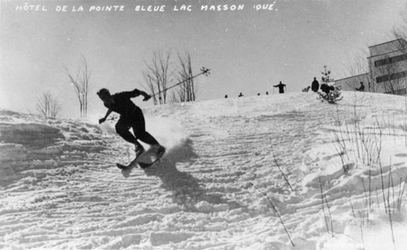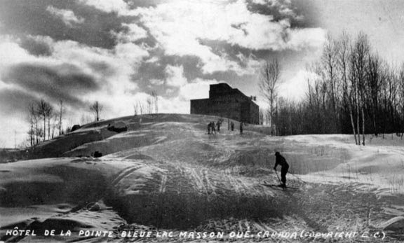 La pente de ski devant l'hôtel de la Pointe-bleue vers 1940