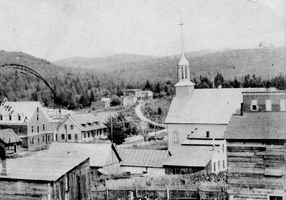 Derrière le premier couvent, le clocher de la première église vers 1915