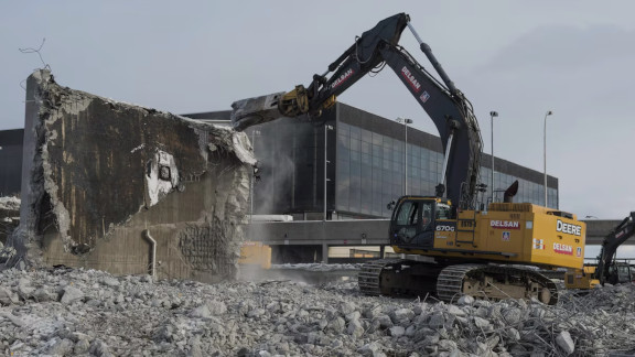 La démolition de l'aérogare en 2014 (photo par Paul Chiasson, La Presse canadienne)
