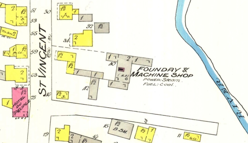 La fonderie en 1908 (détail d'un plan d'assurances par Charles E. Goad)