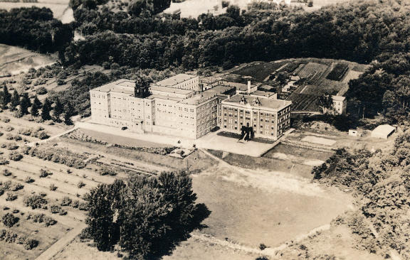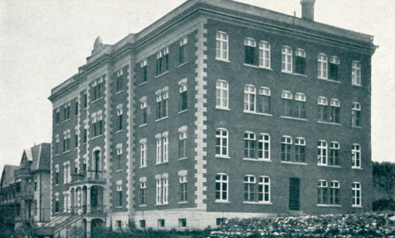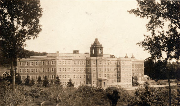 Len pensionnat, inauguré en 1915 (carte postale par Novelty Manufacturing, vers 1925, collection MGV)