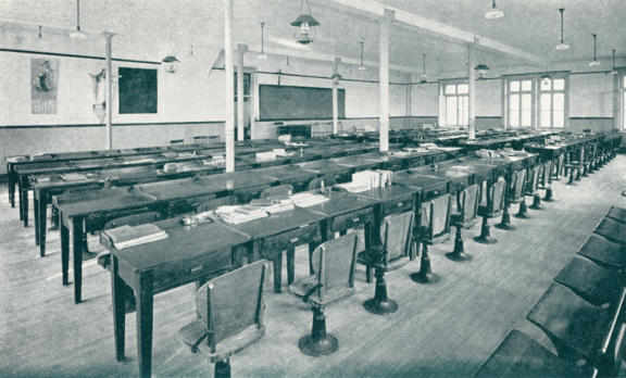 La salle d'études vers 1925 (carte postale par Novelty Manufacturing, collection MGV)
