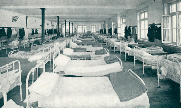 Le grand dortoir vers 1925 (carte postale par Novelty Manufacturing, collection MGV)