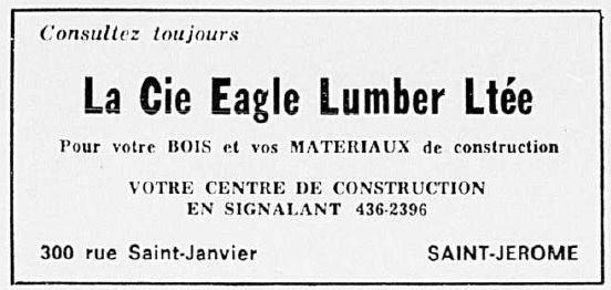 Une publicité d'Eagle Lumber en 1969