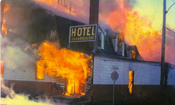 L'incendie de l'hôtel du lot 43, le 16 septembre 1979 (photo tiré du site des pompiers de Saint-Placide)