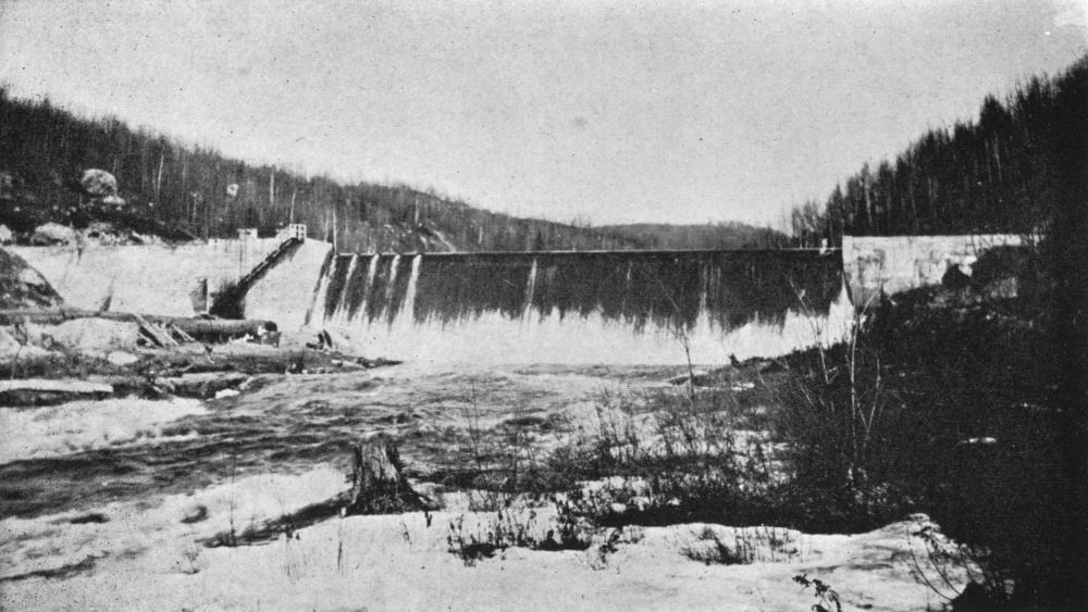 Le barrage en 1927 (photo tirée de Langevin-Lacroix, Histoire de la paroisse de Sainte-Adèle)