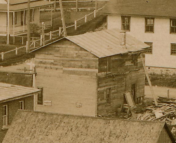 L'immeuble qui occupait le site vers 1925 (extrait d'une carte postale par Ludger Charpentier, collection MGV)