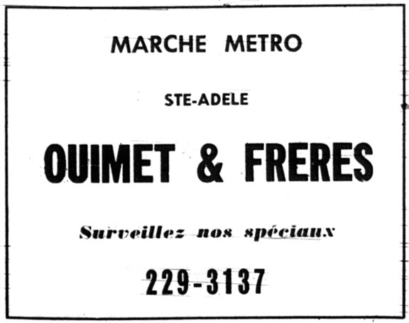 Publicité du magasin en 1967 (Journal des Pays d'en Haut, 25 février 1967, page 15)