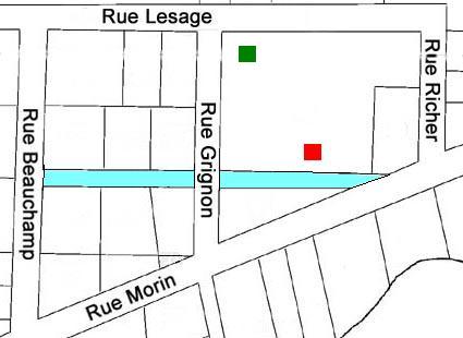 La rue Villemure se détachait de l'actuelle rue Morin à cet endroit et longeait l'arrière de la