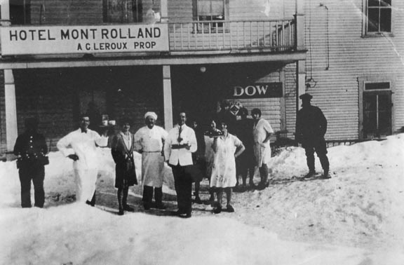 L'hôtel Leroux vers 1925 (carte postale, collection Bibliothèque nationale du Québec)