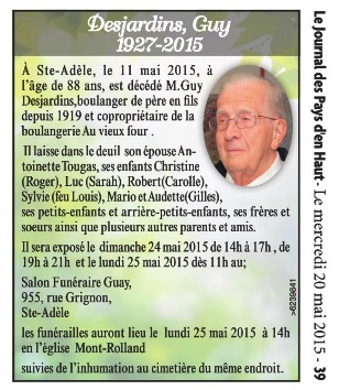 (Le Journal des Pays-d'en-Haut, 20 mai 2015, page 39)