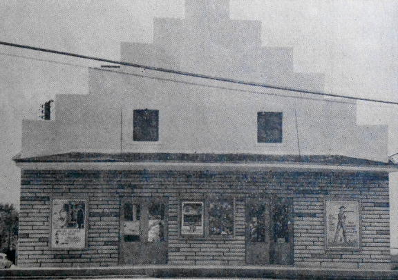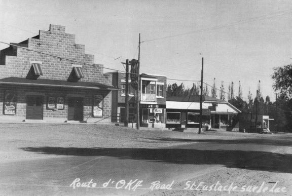À gauche, le cinéma Moon vers 1950 (carte postale par Rolland Beauchamp)