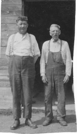 Émile Légaré et Alexandre Foucault devant le moulin à scie vers 1925