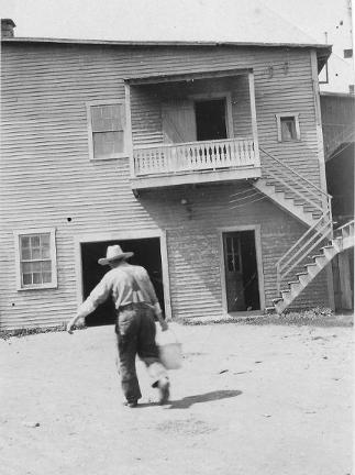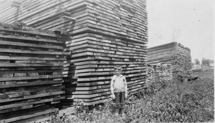 Gaston Légaré, fils d'Émile, dans la cour à bois vers 1930