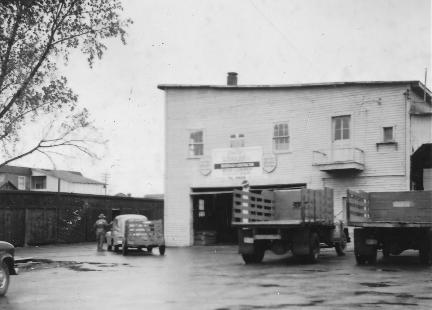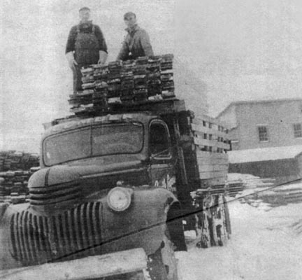 La cour à bois en 1952. Sur le camion: Léonard Lefebvre et