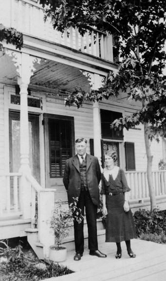 Émile Légaré et son épouse Léontine Giraldeau devant la maison, vers 1930