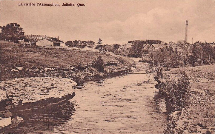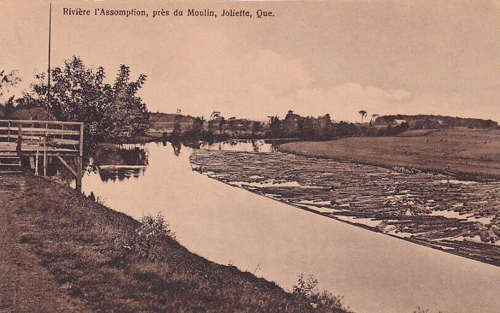 Joliette - La rivière L'Assomption, vers 1930 (carte postale par Novelty Manufacturing & Art) |