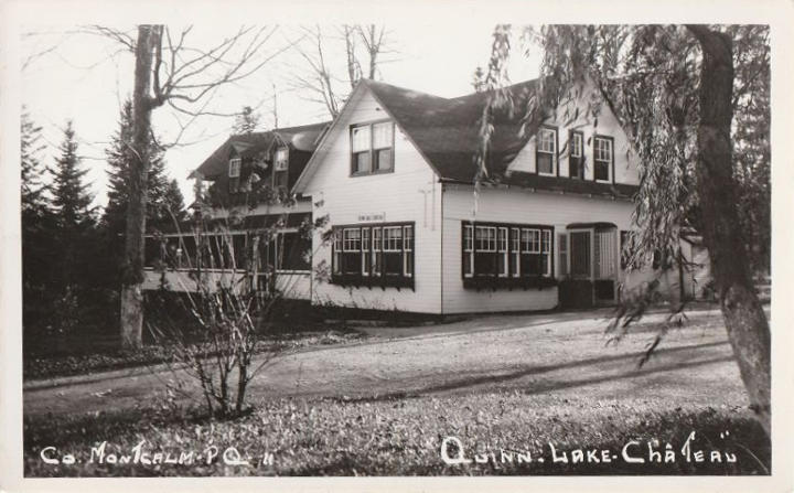 Le «Château», lac Quinn, vers 1950 (carte postale par Michel Photo) |