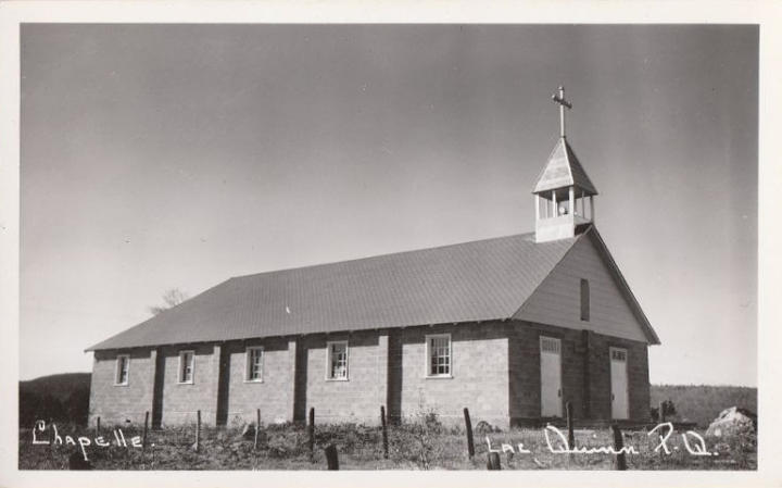 La chapelle du lac Quinn, vers 1950 (carte postale par Michel Photo) |