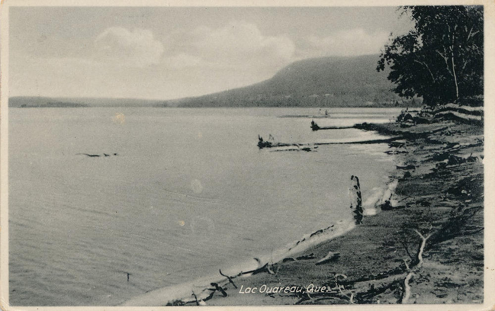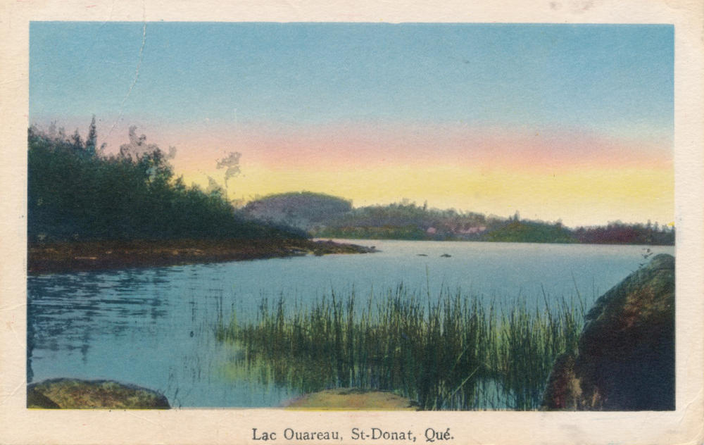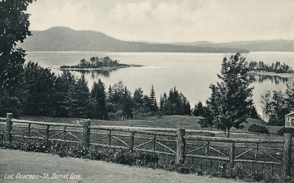 Le lac Ouareau, vers 1935 (carte postale par Novelty Manufacturing & Art Co., oblitérée en 1942) |
