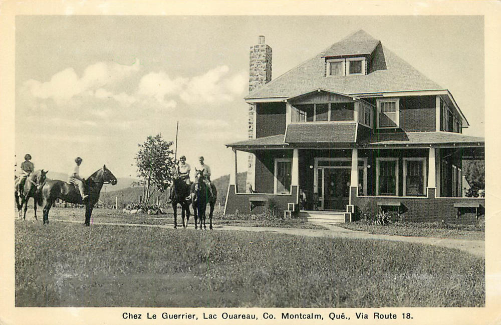 L'auberge LeGuerrier au lac Ouareau, vers 1940 (carte postale par Photo Tex) |