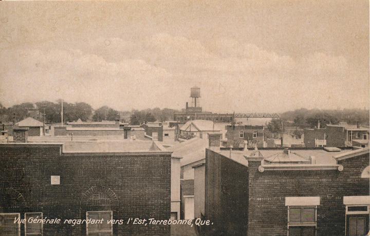 Terrebonne - Vue générale regardant vers l'Est, vers 1925 (carte postale par M. Richard, Terrebonne) |