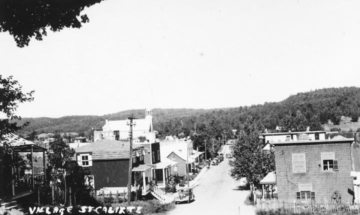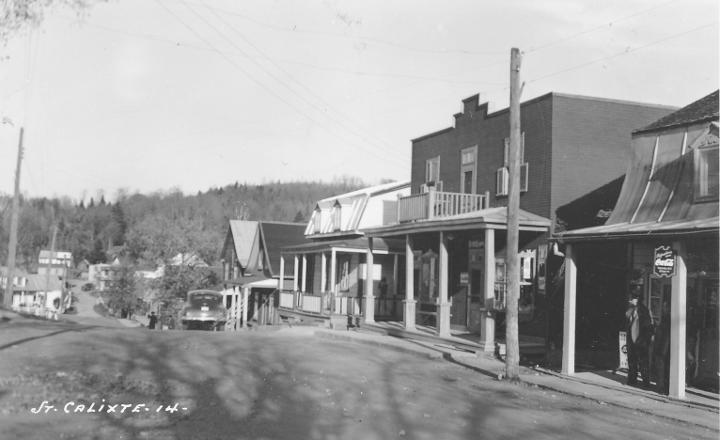 Saint-Calixte - Une rue du village, vers 1945 (carte postale par Ludger Charpentier no 14, oblitérée en 1949) |