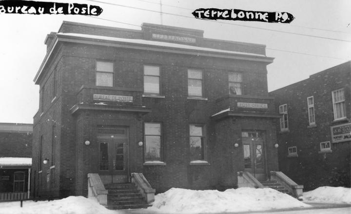 Terrebonne - Le bureau de poste, vers 1945 (carte postale anonyme) |