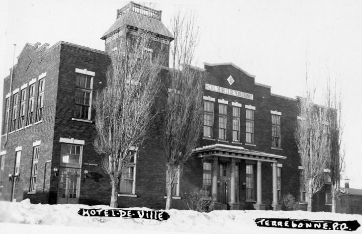 Terrebonne - L'hôtel de Ville, vers 1945 (carte postale anonyme) |