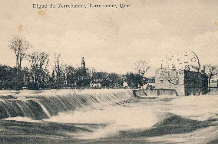 Terrebonne - La digue, vers 1920-25 (carte postale anonyme, oblitérée en 1927) |