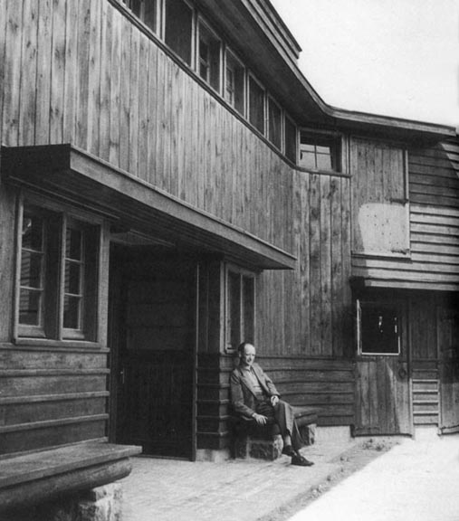 Antoine Courtens, architecte du Domaine, devant les écuries vers 1938