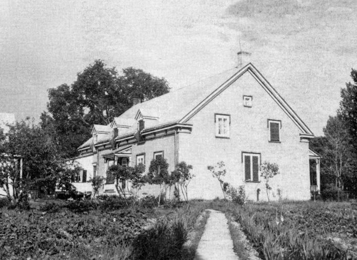 Le second presbytère, construit en 1849 et démoli en 1955 (photo tirée de l'Album des Deux-Montagnes)
