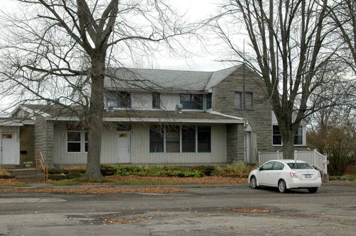 Le second presbytère, construit en 1849 et démoli en 1955 (Bibliothèque et Archives nationales du Québec E6,S7,SS1,P218656)
